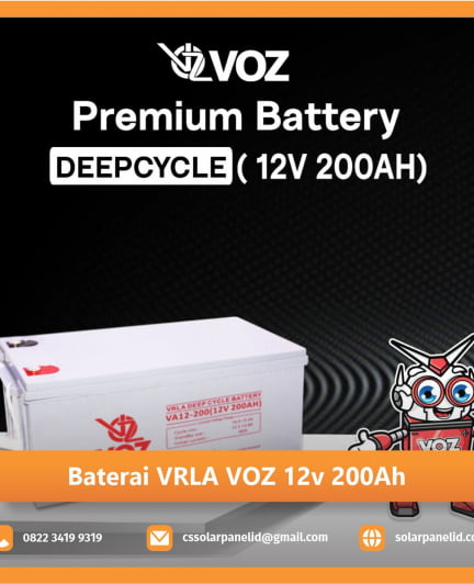 Baterai VRLA VOZ 12v 200Ah merupakan baterai yang menggunakan bahan kimia Asam Timbal (Lead Acid) sebagai bahan kandungan dalam baterai. Secara fisik baterai jenis ini terlindungi dan tertutup rapat. Yang nampak pada bagian luar hanya terminal (+) positif dan (-) negatif. Didesain agar cairan elektrolit tidak berkurang karena bocor atau penguapan, baterai jenis ini memiliki katup ventilasi yang hanya terbuka pada tekanan yang ekstrem untuk pembuangan gas hasil reaksi kimianya.