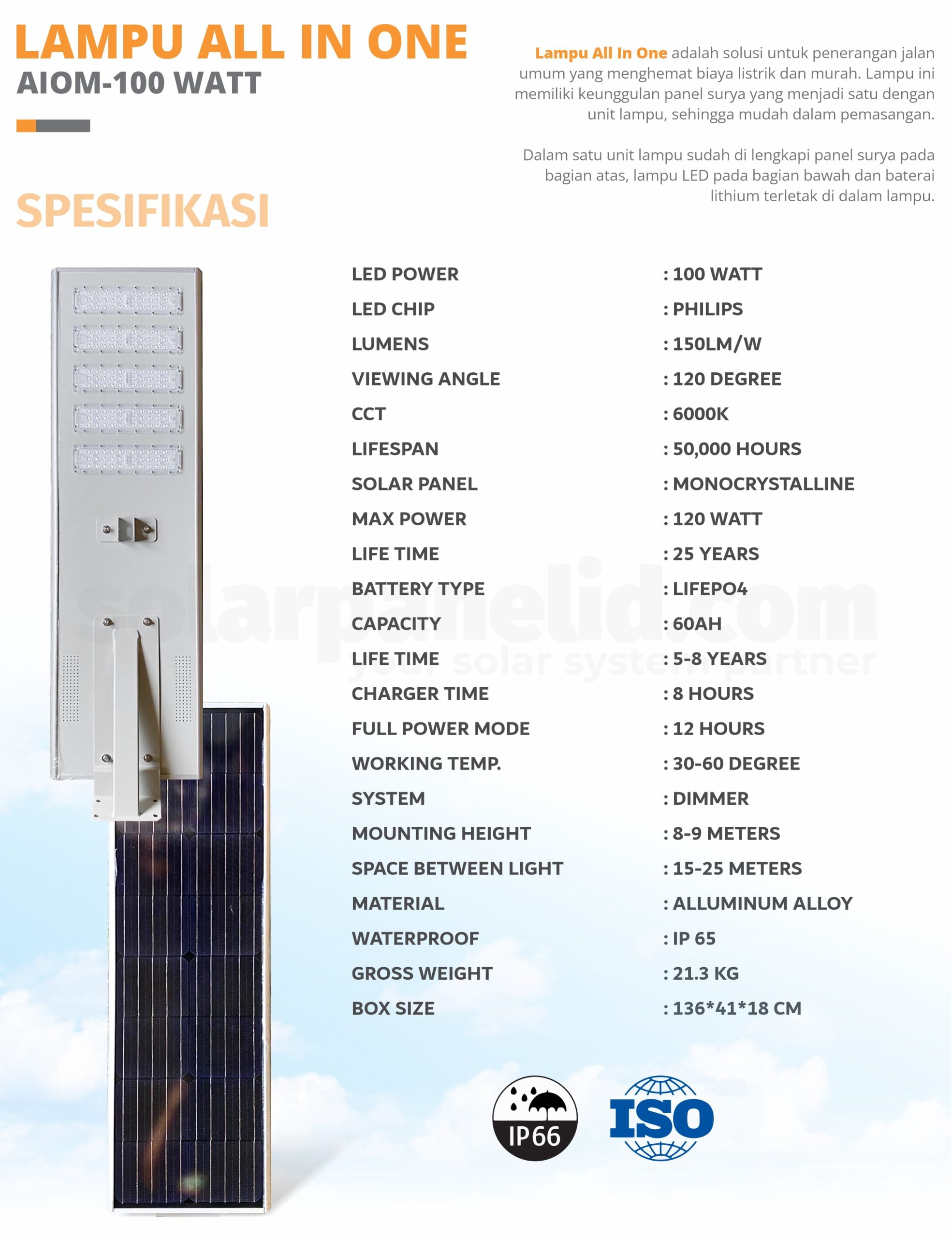 PJU Tenaga surya 100 watt murah bergaransi